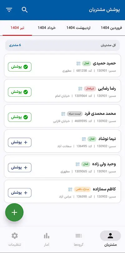 • ثبت پوشش به‌ازای هر مشتری