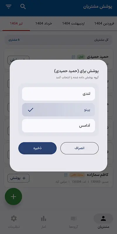 برای هر مشتری، تنها با چند کلیک می‌توانید وضعیت پوشش محصول را ماه‌به‌ماه ذخیره کنید.