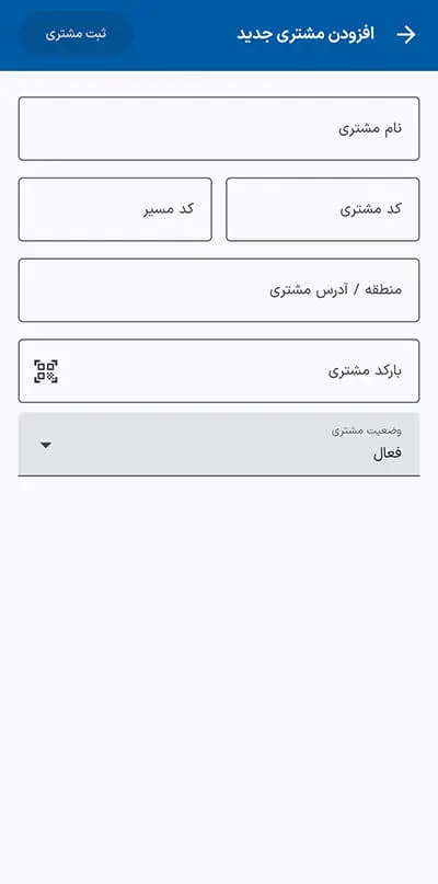 در ادامه می‌توانید نمونه‌ای از صفحات داخلی اپلیکیشن «مدیریت پوشش مشتریان اکتیو» را مشاهده کنید. طراحی ساده، خوانا و کاملاً متناسب با نیاز تیم فروش میدانی.